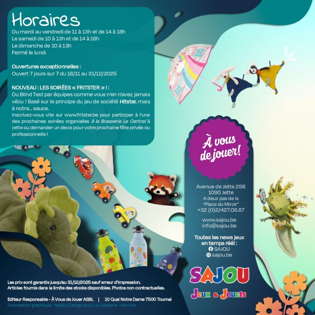 Bienvenue sur la page dĂ©diĂ©e au Catalogue Sajou 2025 ! Explorez la sĂ©lection complète de JEUX ET JOUETS, de LIVRES, et de JEUX DE SOCIÉTÉ pour tous les âges, garantis jusqu’au 31/12/2025 (sauf erreur d’impression et dans la limite des stocks disponibles).